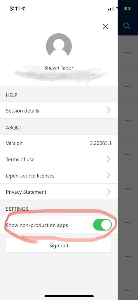 Today I was preparing for a demonstration of the new Dynamics 365 Field Service Mobile to a client and noticed that my sitemap changes in my development environment were not taking effect. After force quitting the app, re-configuring the app, deleting and re-downloading the app and almost throwing my phone across the room…I realized the error of my ways. I didn’t enable the setting to show non-production apps!